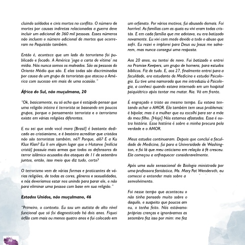 por causa de um grupo de terroristas que atacou a Amé- faculdade, era estudante de Medicina e estudei Psicolo-